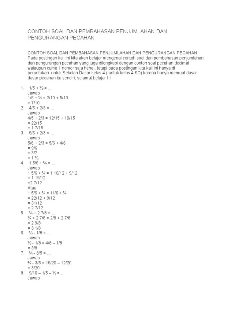 Latihan soal penjumlahan dan pengurangan pecahan. Samakan penyebut dengan mencari kpk dari . Soal cerita pecahan memberikan bank soal soal dan kunci jawaban soal. Soal cerita operasi hitung pecahan berikut dibagi menjadi 2 bagian. Bagaimana menyelesaikan operasi desimal dan pecahan di dalam soal cerita?